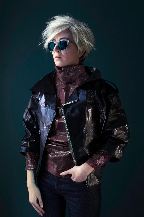 Elle crée chaque accessoire, chaque vêtement en papier recyclé, en carton,